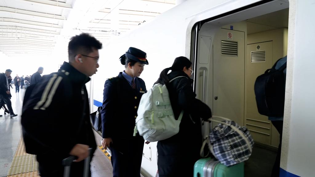 站停的4分钟,胡蝶和班组成员必须争分夺秒组织旅客乘降,同时完成与车站调度、驾驶室及随车机械师的联控。