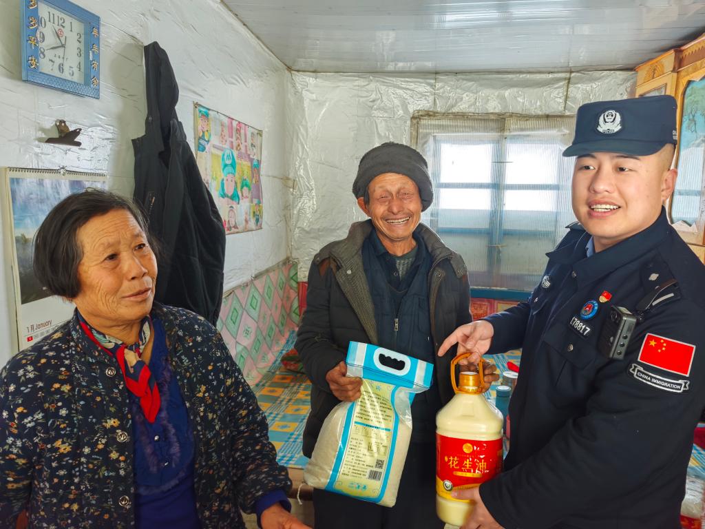 白山边境管理支队池南边境派出所民警李青松年前到辖区村屯看望慰问群众。
