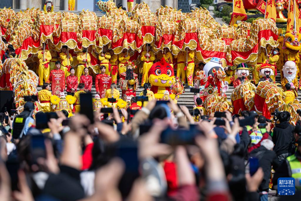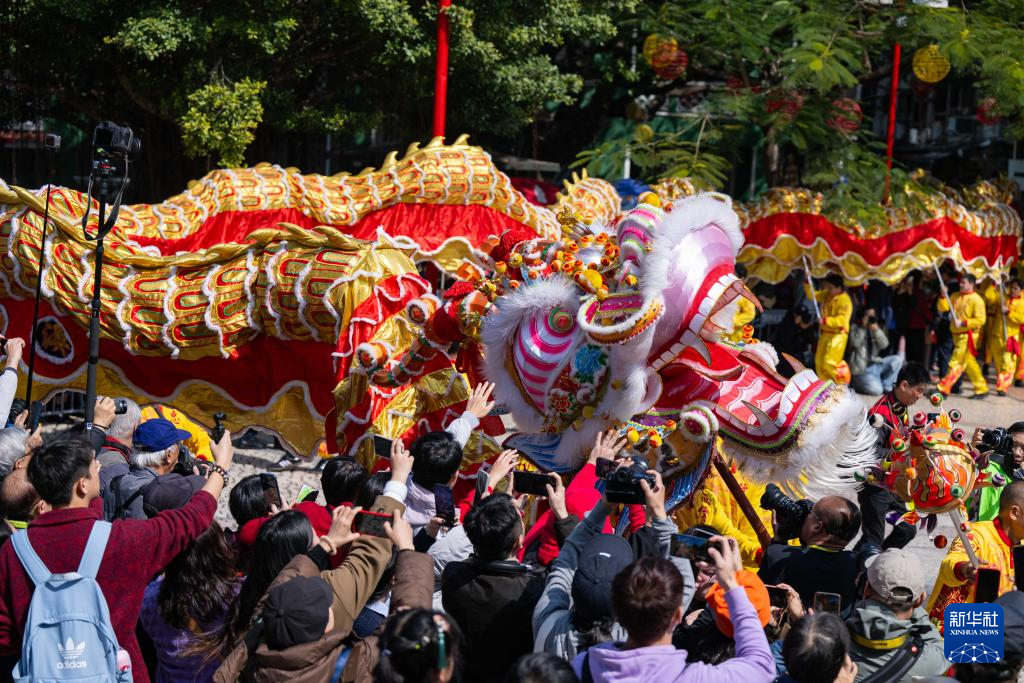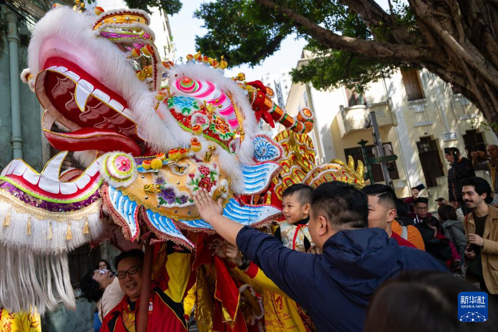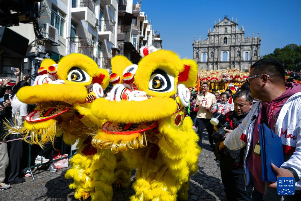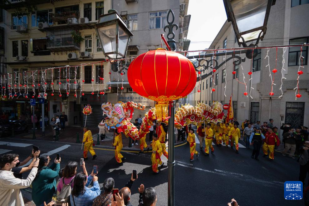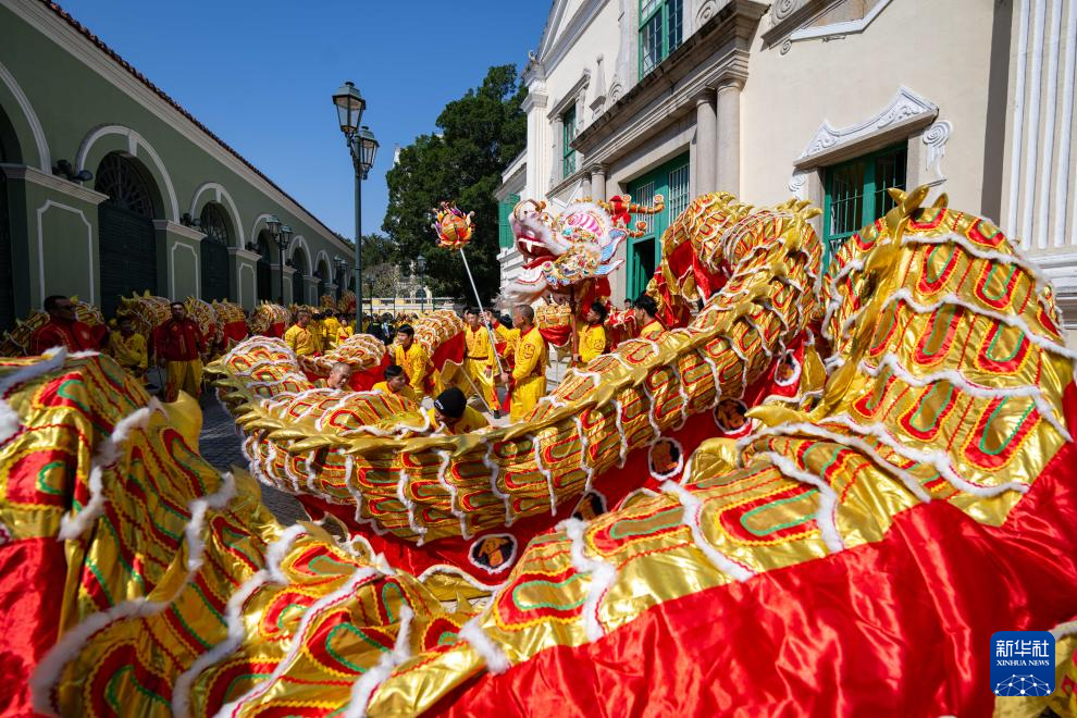 当日是农历大年初一,澳门特区旅游局在大三巴牌坊及议事亭前地举办“欢乐春节——2025年龙腾舞跃贺新春”社区巡演活动,欢度春节。