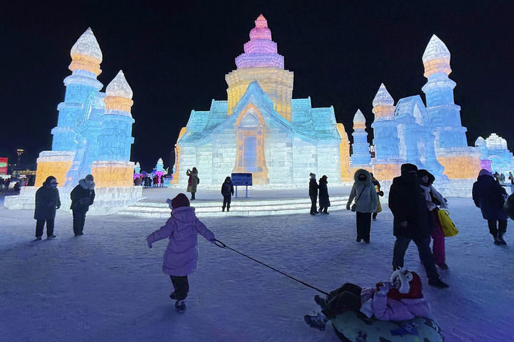 在黑龙江的哈尔滨冰雪大世界,巨型冰雕错落林立,穿行其间仿佛走进梦幻般的童话王国。“太不可思议了,我被哈尔滨的冰雪魅力深深折服。”来自津巴布韦的“00后”游客莎龙说。