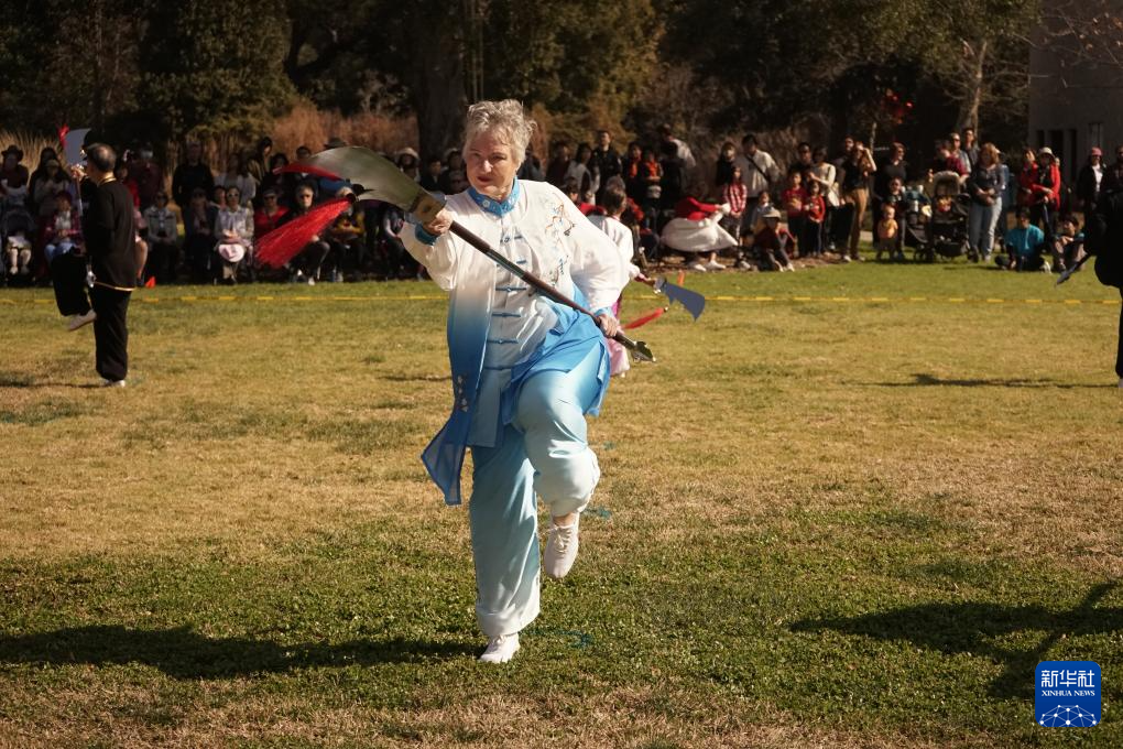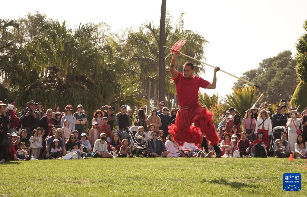 2月1日,人们在美国洛杉矶亨廷顿图书馆举行的春节庆祝活动上观看武术表演。新华社发(曾慧摄)