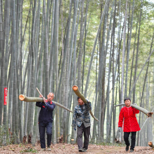 2024年12月10日,在湖南省郴州市桂东县桥头乡侠头村的楠竹开发示范基地,村民在搬运楠竹。新华每日电讯记者 陈泽国 摄
