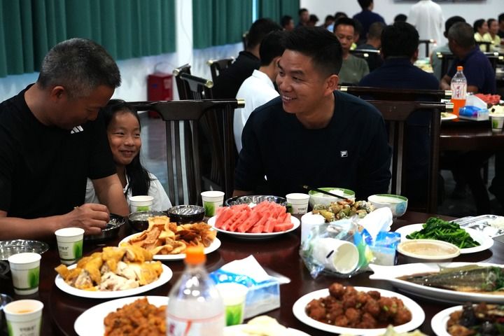 1月28日,晋卿岛上的干部职工和渔民们共享团圆年夜饭。
