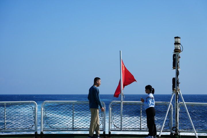 1月25日一大早,我坐上前往永乐群岛的“中国渔政310船”。3个多小时后,船靠泊在琛航岛码头。还得换乘冲锋舟,花半小时才能到达我此行的目的地——晋卿岛。