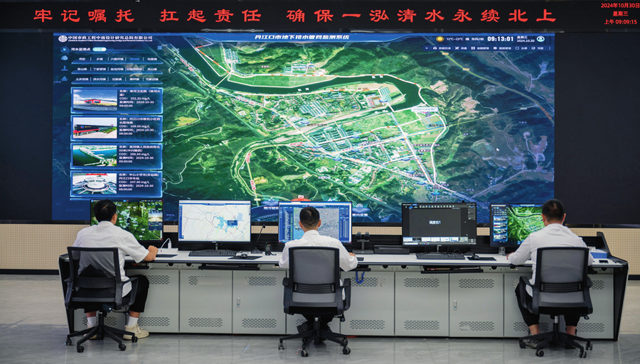 丹江口市水库水质安全保障指挥中心工作人员在工作(2024 年 10 月 30 日摄) 伍志尊摄 / 本刊