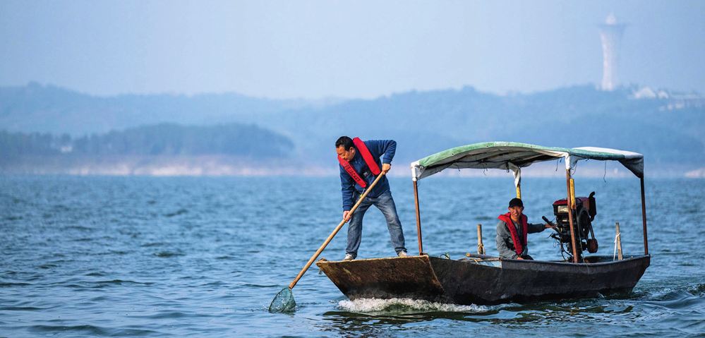 清漂员在丹江口水库作业 (2024 年 10 月 28 日摄) 伍志尊摄 / 本刊