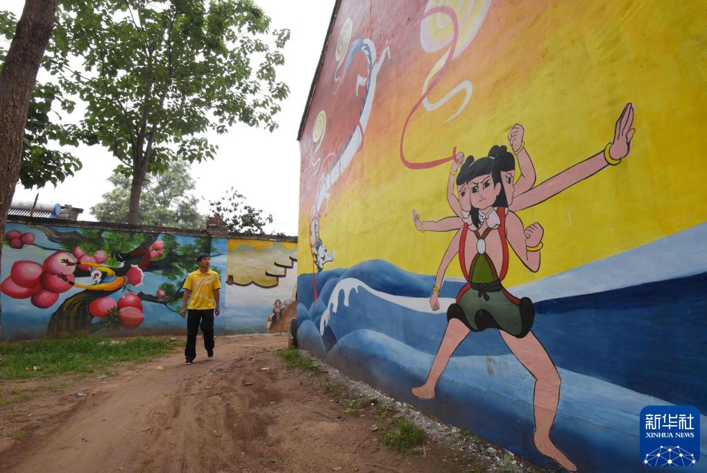 这是2016年7月14日在河北省邯郸市广平县前南堡村拍摄的农舍墙体漫画。新华社发(郝群英摄)