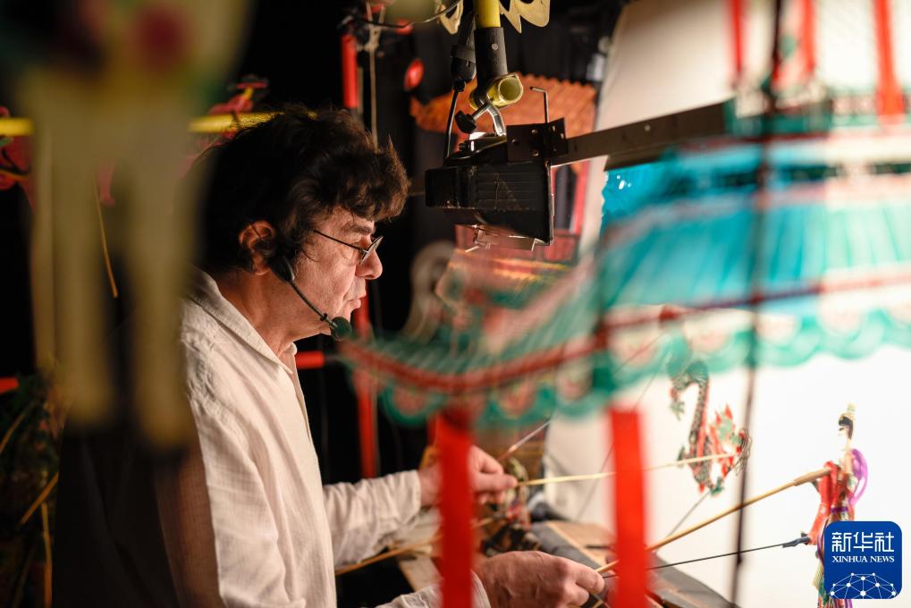 2017年2月4日,艺术家在法国巴黎表演皮影戏《哪吒闹海》。新华社记者 陈益宸 摄