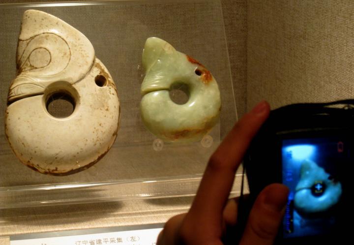 10月30日,参观者在拍摄红山文化展品“玉猪龙”。新华社记者 汪永基 摄