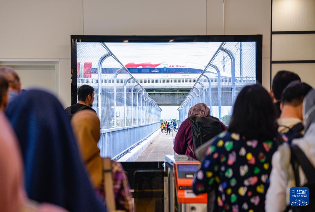 2月17日,在印度尼西亚雅加达,乘客在雅万高铁哈利姆站排队前往站台。新华社记者 徐钦 摄