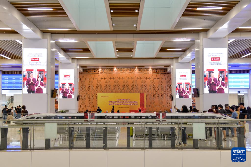 这是2月17日在印度尼西亚雅加达雅万高铁哈利姆站候车大厅拍摄的雅万高铁官方纪念品商店。新华社记者 徐钦 摄