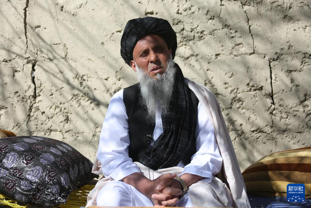 2月13日,在阿富汗贾拉拉巴德市附近的哈迪亚希尔,汗·穆罕默德坐在自家院子里。新华社发(塞夫拉赫曼·萨菲摄)