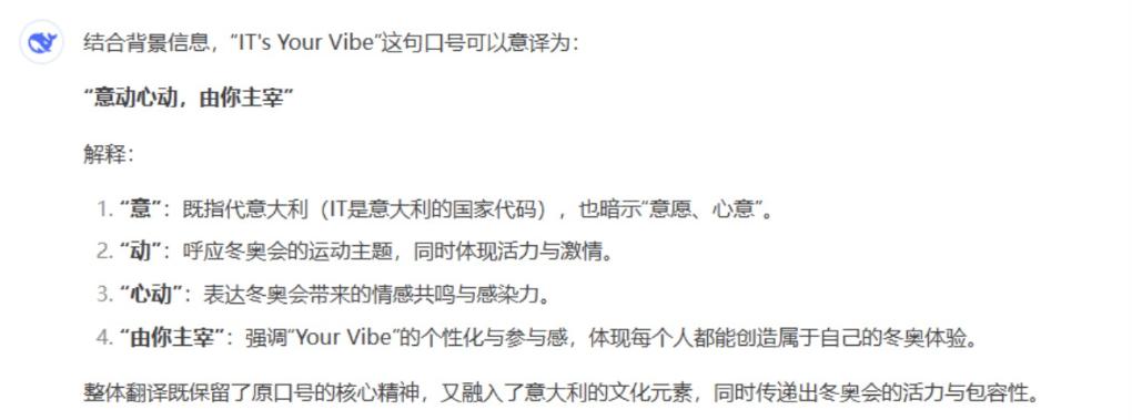 讯飞星火版本:1.“它”是你的独特氛围。2.“意”起嗨,展现你的范儿!3.“意”之盛会,尽显你的独特风采。