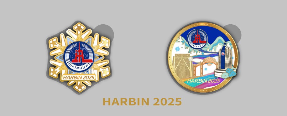 各送出哈尔滨亚冬会新华社官方纪念章一套(两枚)👇