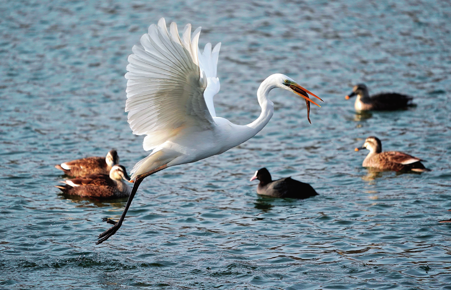白鹭在太原市汾河觅食(2025年1月1日摄)詹彦摄/本刊