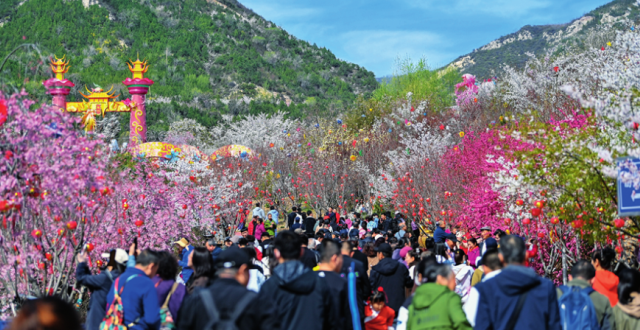 游客在太原市玉泉山城郊森林公园观赏樱花(2023年4月8日摄)杨晨光摄/本刊