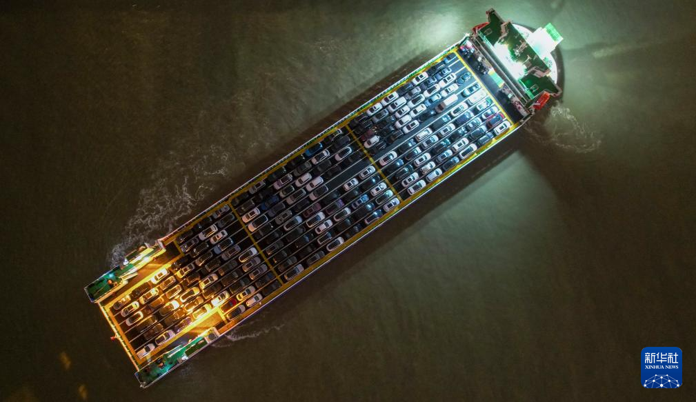 新能源车专用运输船“绿源二号”装载完成后驶离海南省海口市秀英港(2025年1月26日摄,无人机照片)。新华社记者 杨冠宇 摄