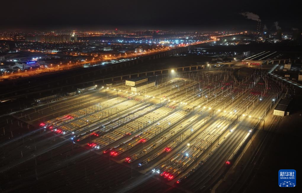 2025年1月22日晚,工作人员驾驶送料小车为检修库内的作业人员送去工具和配件。新华社发(许丛军摄)