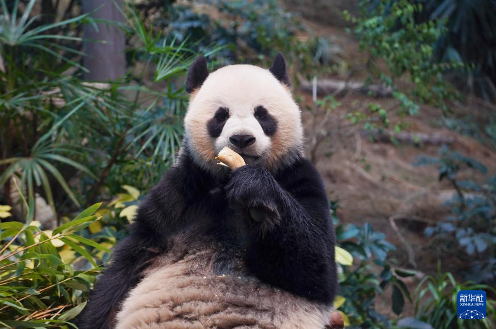 这是居住在香港海洋公园的中央赠港大熊猫“安安”(2025年1月16日摄)。新华社发(龙镜伊摄)