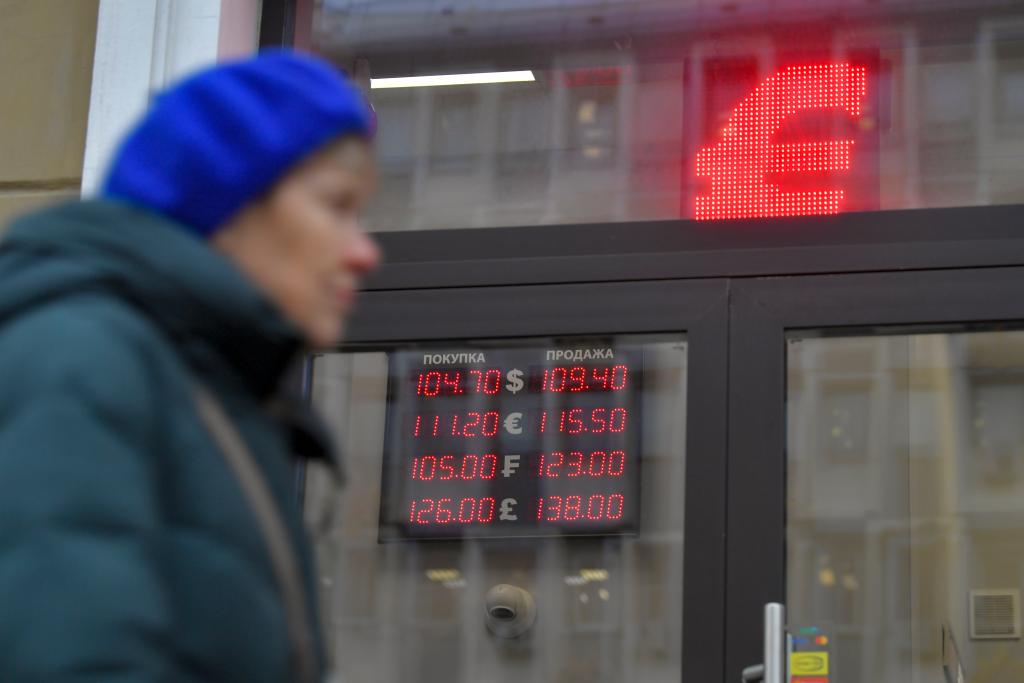 2024年11月28日,在俄罗斯首都莫斯科,行人经过一家外汇兑换点。新华社发(亚历山大摄)