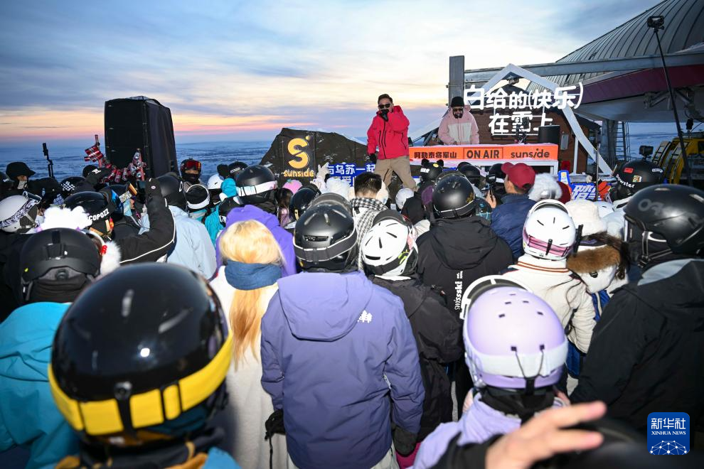 雪友在新疆阿勒泰将军山国际滑雪度假区参加“夕阳派对”(2025年1月28日摄)。新华社记者 胡虎虎 摄