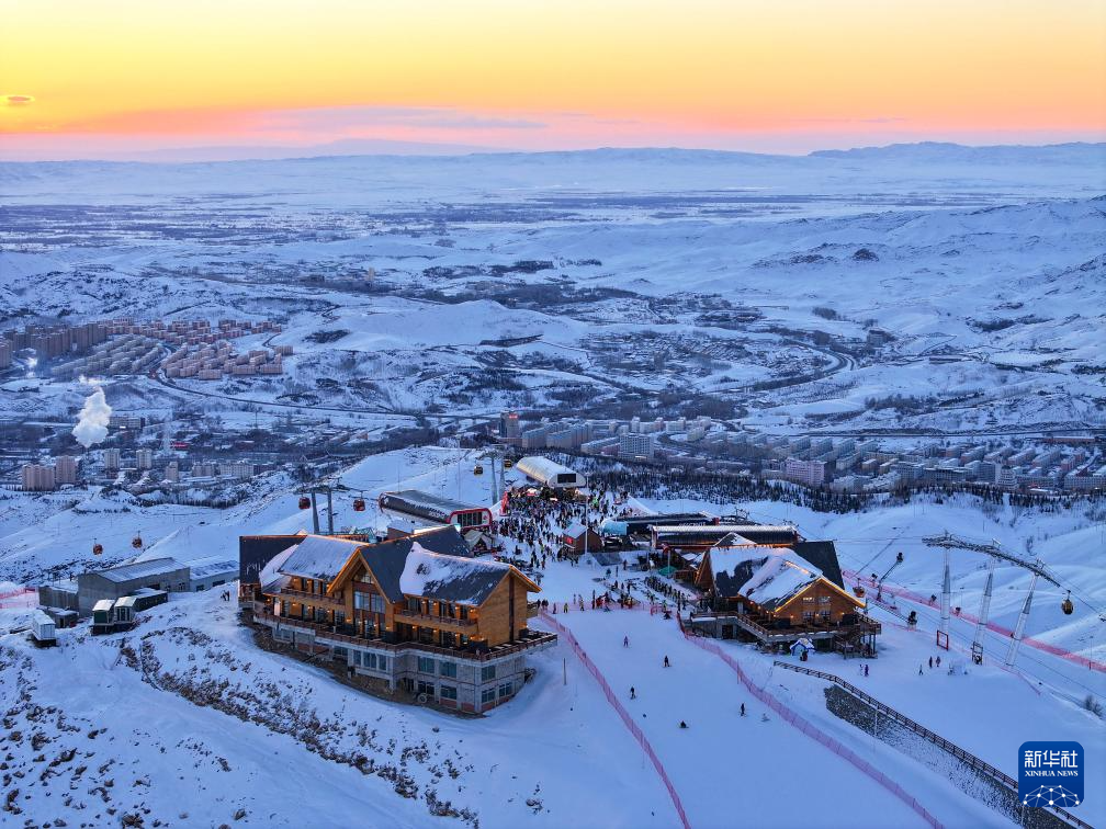 日落时分,阿勒泰市将军山国际滑雪度假区的山顶区域人头攒动(2025年1月24日摄)。新华社记者 胡虎虎 摄