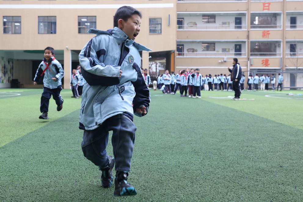 “以前体育课一般是排在下午,现在我们把体育课分散到了全天,保证每个班每天都有一节体育课,让学生有更多时间动起来、跑起来。”该校副校长袁林说。