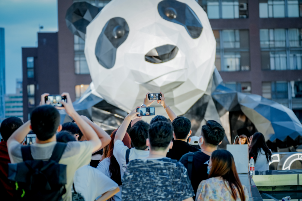 游客打卡成都IFS商场的“爬墙熊猫”。成都IFS商场供图