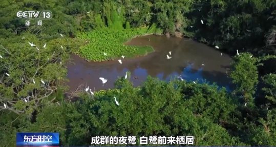 自高空望去,这片茂密的水上绿洲,其实只有一棵树。这是一株407岁的水榕树,垂落的气生根如竖琴琴弦立于碧波,树冠的覆盖面积超1万平方米。树茂鸟至,成群的夜鹭、白鹭前来栖居,成就出作家笔下的“一株榕树便天堂”。薄雾轻笼,生灵低语与婆娑树影交织,绘就一片独特的自然秘境。