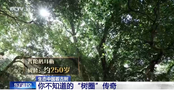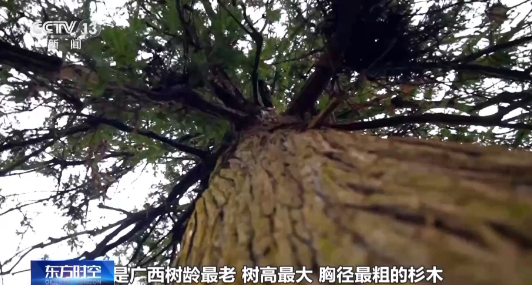 总台记者 濮佳怡:“中国香榧王”,这棵树的主干,大概需要5到6个成年人才能够将它完全地抱住。