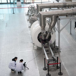科研人员在位于安徽省合肥市的聚变堆主机关键系统综合研究设施(CRAFT)园区内记录强流直线等离子体装置“赤霄”的运行状态(2025年1月14日摄)。新华社记者 张端 摄