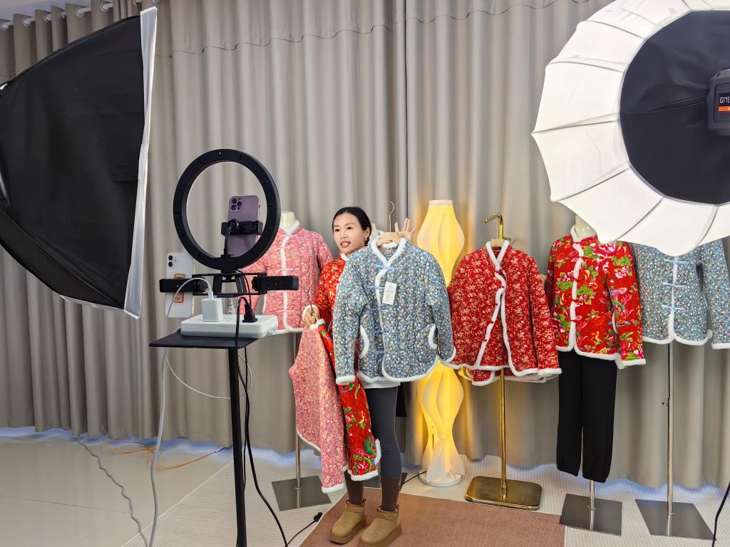 “家人们,这是新款国风棉服,现在几十块钱就可以带回家……”在东昌府区农村电商产业园内,主播正在直播带货。产业园电商运营部负责人朱瑞娜介绍,许多消费者把棉袄当成居家服、演出服,近期棉袄在电商平台上的日均销售额达10万元,火红的买卖已带动多名农家妇女主动学习如何做主播,她们的精气神越来越足。