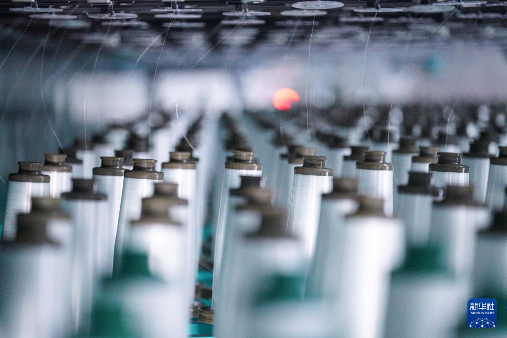 3月19日,工人在河南光远新材料股份有限公司电子布生产车间进行原丝巡检。