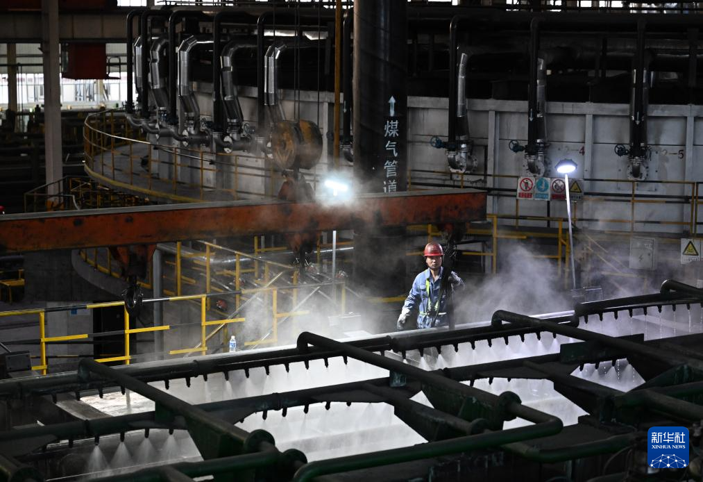 3月19日,工人在林州凤宝管业有限公司89连轧管厂生产线上作业。