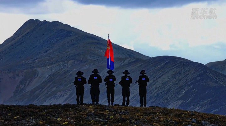 鲁茸取扎和战友们巡逻。(新华社视频报道截图)