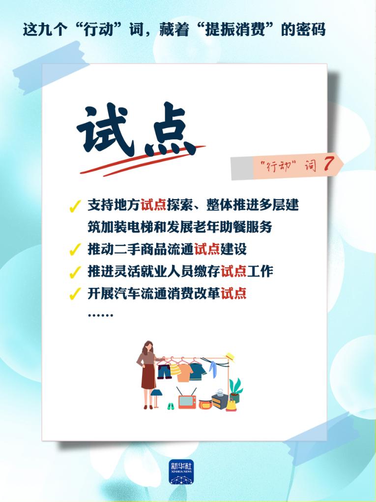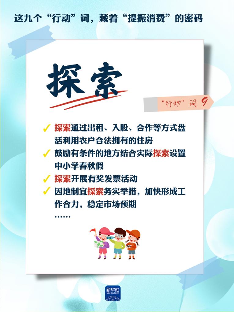 我们梳理出“方案”中使用频率较高的九个“行动”词,从这些不同维度的“行动”词中,解读“专项行动”的丰富内涵和政策“含金量”,看看哪些是立竿见影、吹糠见米的惠民行动?哪些是需要加力扩围、加快补齐的消费短板?还有哪些是需要有序推进、以点带面的消费“新”点?