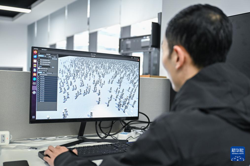 3月13日,工程师付龙在验证机器人动作模型训练效果。