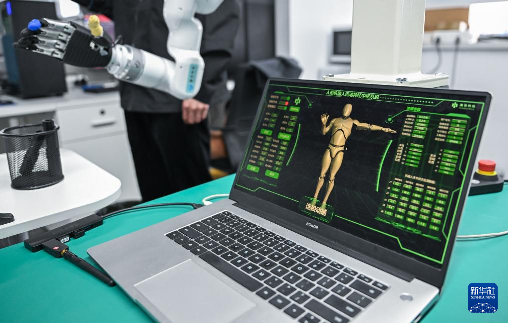 3月24日,研发人员在调试人形机器人运动神经中枢系统。
