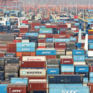钦州港集装箱自动化码头存放的集装箱。新华社记者吕帅 摄