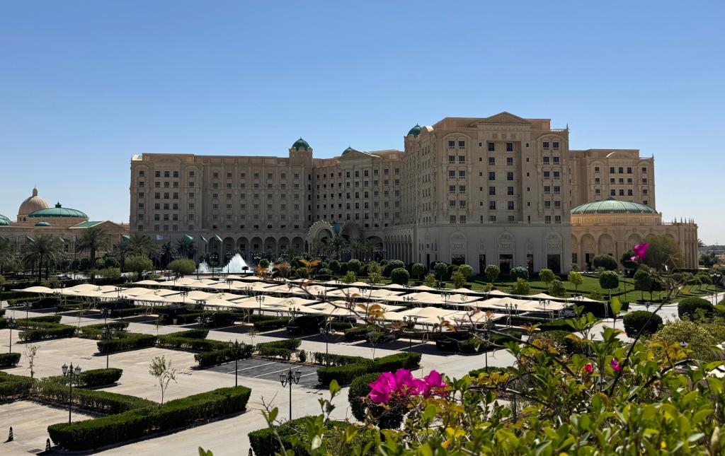 美国和俄罗斯代表团2025年3月24日在沙特阿拉伯首都利雅得举行会谈。图为当天拍摄的美俄代表团举行会谈的酒店。新华社记者王东震摄