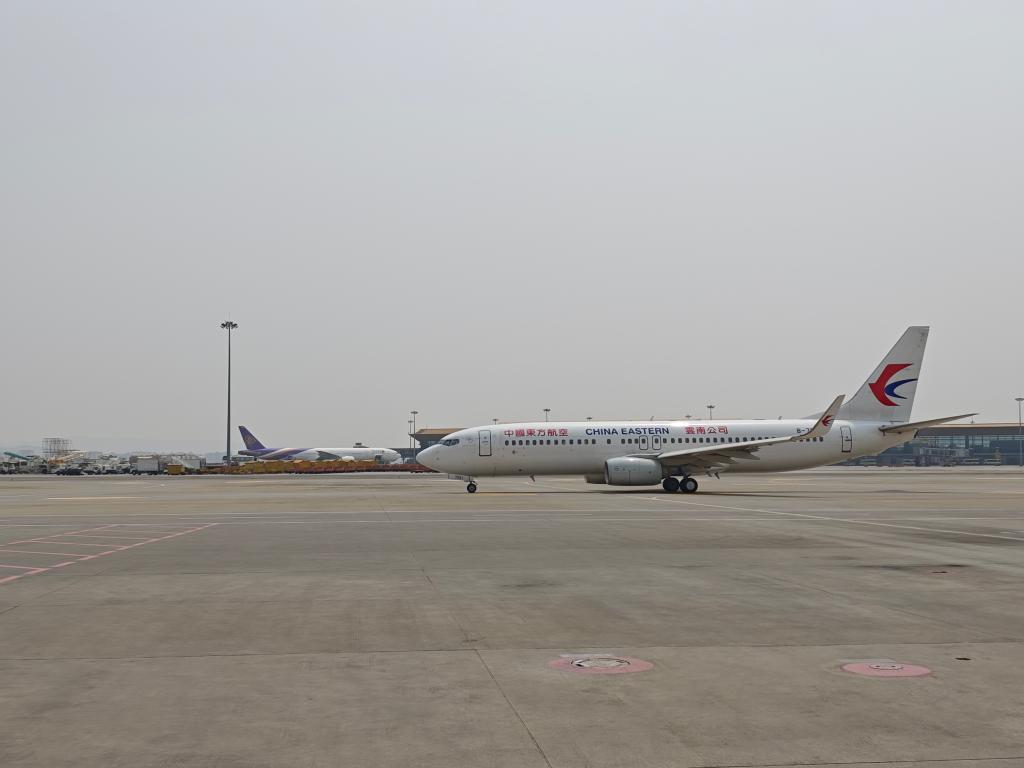 3月30日,MU9003次航班即将在昆明长水国际机场起飞。新华社记者 胡了然 摄