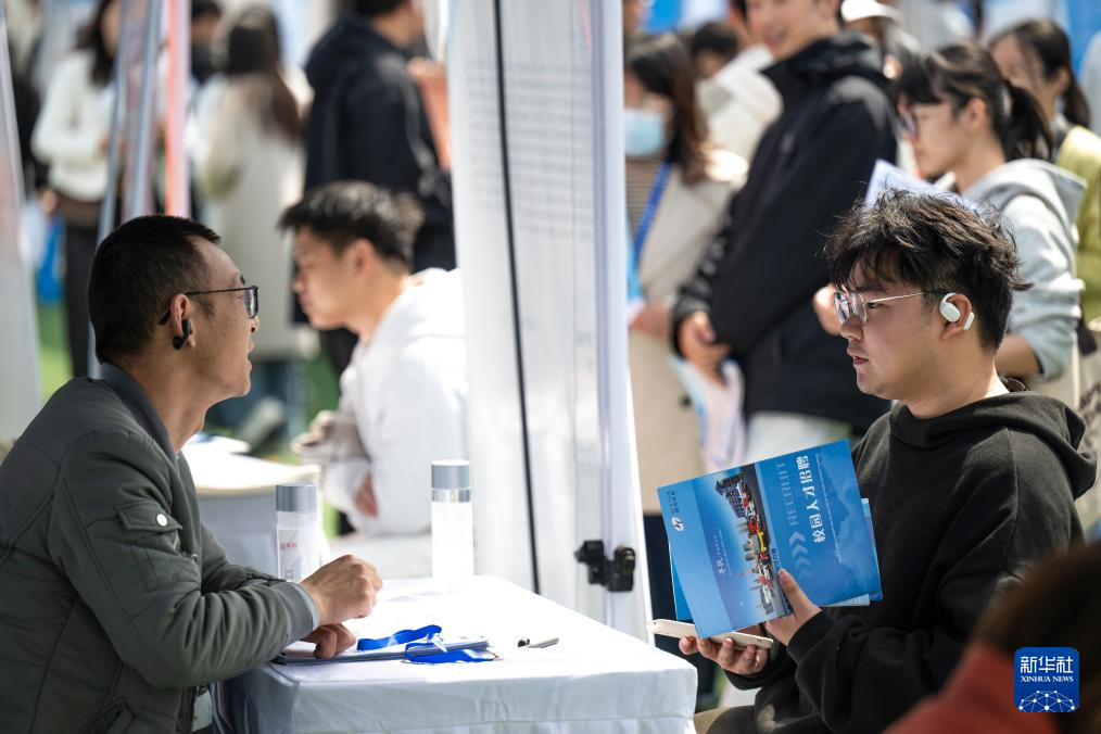 4月1日,求职者在湖北工业大学专场招聘活动现场了解岗位信息。新华社记者 伍志尊 摄