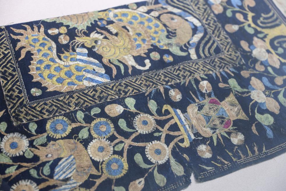 2022年4月20日,博鳌亚洲论坛主题公园展出的黎锦被。新华社记者 张丽芸 摄