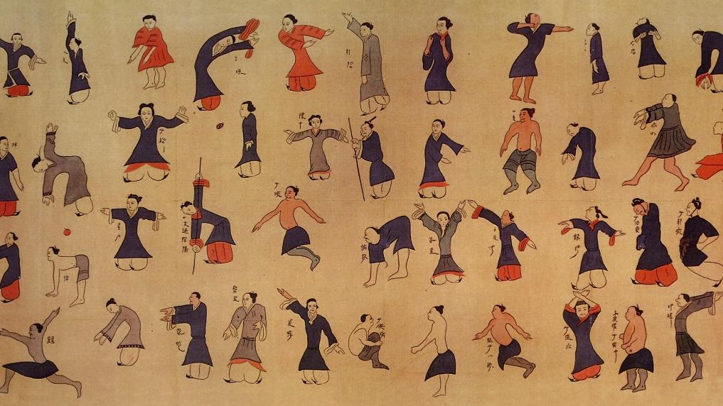 动作丰富的《导引图》,所绘的是导引行气方法,开创了我国气功导引的先河。