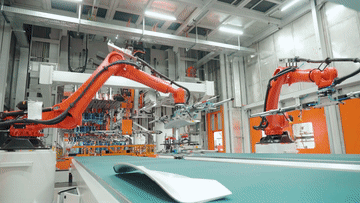 在奥迪一汽新能源汽车有限公司的生产车间,整块的钢板被送入冲压机快速变成各个零部件,机械臂在流水线上灵活运作、精准搬运。