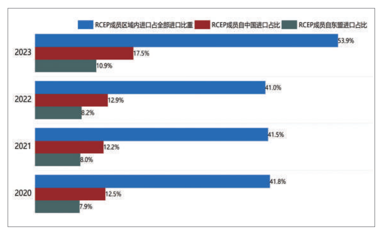 同时,RCEP推动区域内资源配置的效率显著提升。2023年成员国来自区域内的进口货物占比接近54%,较2020年提高12.1个百分点,这表明区域供应链整合已进入高水平的新阶段。