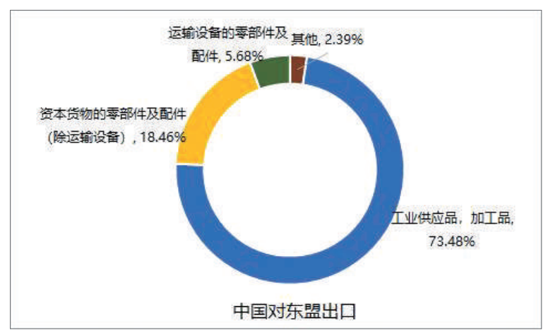 近年来,东盟国家凭借在轻工业、机电产品及配件等劳动密集型产业和能源原材料方面的比较优势,高效承接国际产业转移;中国则依托成熟的工业体系、强大的制造业基础、较高的技术水平,以及在纺织、电气和光学设备等制造业的产业优势,为东盟国家提供关键的中间产品和技术支持。在此过程中,双方逐渐形成“东盟向中国出口初级品-从中国进口机械设备(资本密集型)和中间品(技术密集型)-再将消费品(劳动密集型)出口给中国和第三国”的互利共赢的“区域循环”模式。