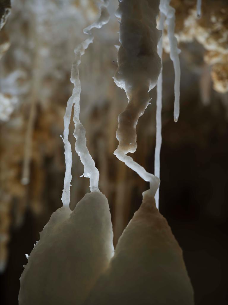 上千根纯白石钟乳如冰晶森林般亭亭玉立于其中,
