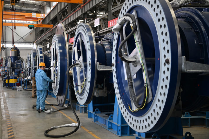 走进酒泉经济技术开发区甘肃明阳智慧能源有限公司总装厂车间,自动化机械设备高速运转,3条风机组装生产线同时开工,经过轮毂装配、主轴装配、传动链装配等工序后,一台风机的主体部分便组装完成。