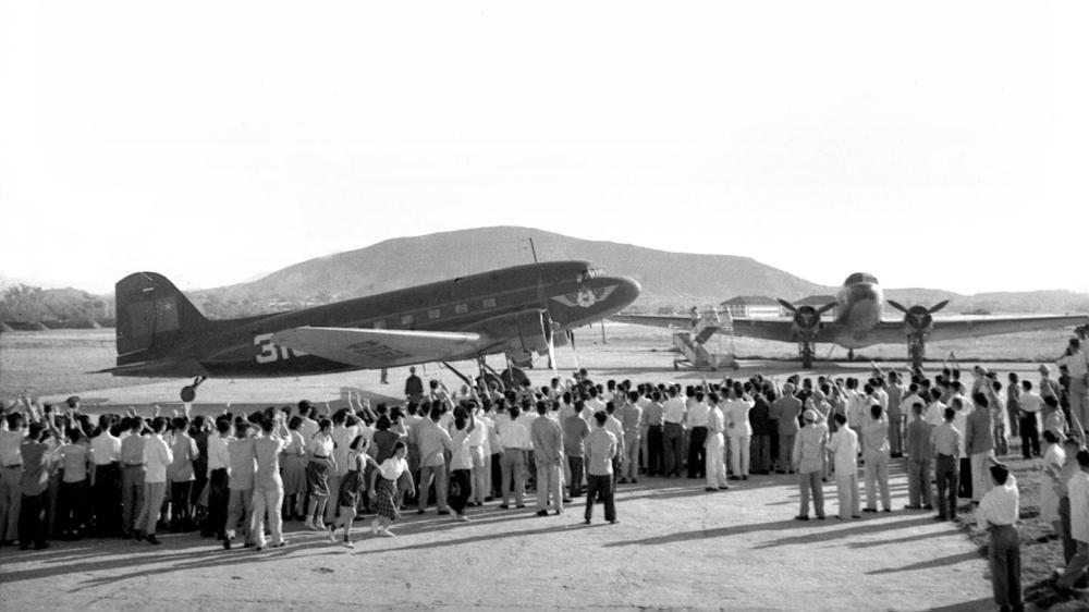 1956年4月24日,从中国广州经南宁至越南河内的民用航线正式通航。这是首航飞机准备起飞。